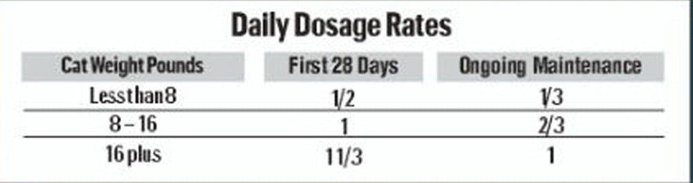 | Cat Weight | First 28 Days Rate | Ongoing Maintenance Rate |